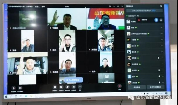 ??????3月26日上午,山東省新媒體協會以視頻會議方式召開一屆二次理事會,協會會長朱德泉主持會議,協會第一屆理事會、監事會、秘書處工作人員參會。