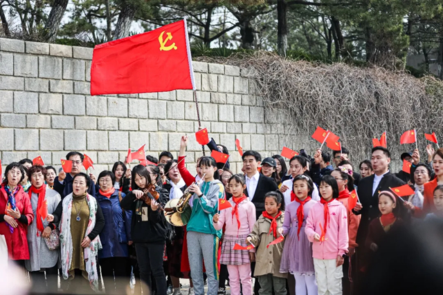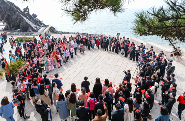 ??????“唱支山歌給黨聽,我把黨來比母親;母親只生了我的身,黨的光輝照我心……”3月28日上午,劉公島景區(qū)聚集了一群充滿激情的人,他們手持紅旗,深情歌唱,讓紅色旋律在劉公島的山海間久久飄蕩。