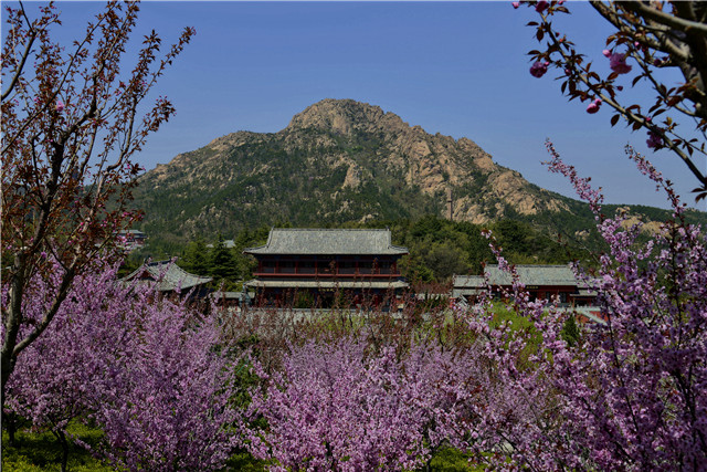 位于榮成東南沿海的石島赤山風景區,是威海主要賞櫻地之一。這里種植了數萬株十幾個品種的櫻花。由于地處沿海,且海拔較高,景區櫻花開放時間較內陸地區晚了一周左右,4月下旬至5月初是最佳觀賞期。每年這一時間,赤山風景區會舉辦主題賞櫻活動,成為威海春天旅行的一張名片。特別是法華寺附近的櫻花,山寺櫻花兩相映,是暮春打卡的好去處。