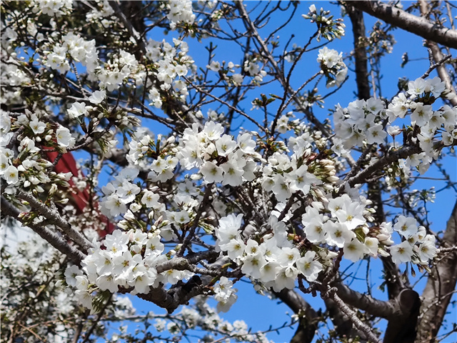 位于里口山王家疃村西街,為早櫻品種,原來4月中旬為最佳觀賞期,2021年提前10天進入盛花期,清明節前后均為最佳觀賞期。