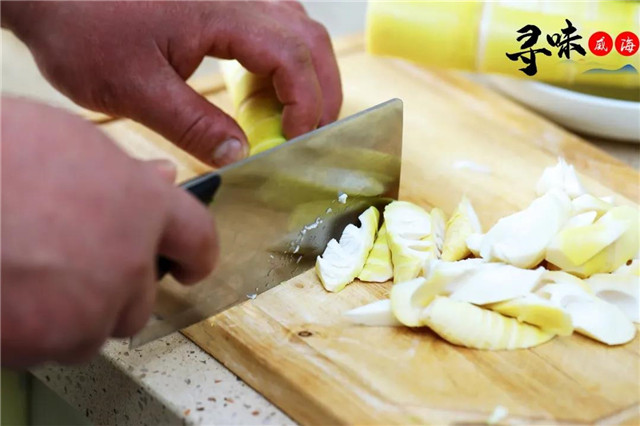 筍的挑選直接關乎到腌篤鮮的命脈,而這道命脈就在劉師傅手里。他對食材的把控極為嚴苛,這種嚴苛直接反應到菜的口感上。就春筍而言,筍體潔白如玉、肉質鮮嫩為最佳。