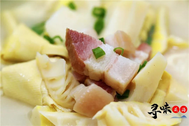 咸肉、鮮肉、竹筍、豆結,不同食材在濃白的湯底里纏綿,肉的咸香與筍的鮮甜在濃湯里不期而遇,時間的催化下,發(fā)生奇妙的反應,肉鮮而不咸、香而不膩。
