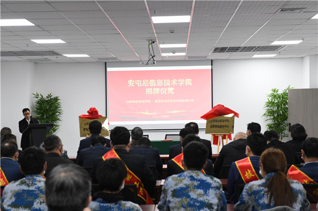 ??????安屯尼信息技術學院是山東鋁業學院的二級學院,由山東鋁業職業學院和安屯尼實業發展有限公司共建。該學院以企業生產一線作為教學課堂,以市場人才需求為導向實施實訓教學,將專業知識教育與實踐技能培訓相結合,形成“學校教師+企業師傅”的教育新資源和“課堂理論+職場實踐”的人才培養新體系,對推動校企深度合作交流,進一步深化產教融合,構建校企協同育人平臺,實現人才精準培養、專業建設與企業發展有效銜接具有十分重要意義。