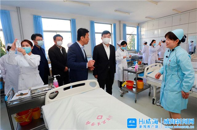??????在威海市衛生學校,張海波查看辦公樓、教學樓、學生宿舍等軟硬件設施和教育教學情況,仔細詢問學生就業去向、留威比例,強調要科學設置專業課程,努力培養更多符合行業發展的專業技術人才。