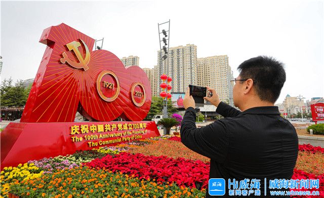 ??????景觀雕塑由三部分組成,主雕塑“中國共產黨成立100周年慶祝活動標識”長8.5米、高4.7米,周邊綠植環繞、鮮花吐芬,形成花團錦簇、江山秀麗的視覺效果。主雕塑左右兩側,各一組飄揚的紅旗造型雕塑,上面鐫刻著黨史學習教育內容,與主雕塑相互呼應,傳遞出昂揚向上、振奮人心的力量。(Hi威海客戶端記者 孫大偉)