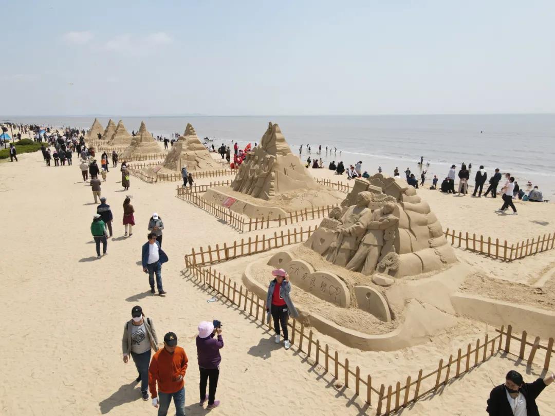 5月1日,中國威海沙雕文化藝術節在南海新區南海公園正式開幕,本屆藝術節以“中國夢、百年潮”為主題,以雕塑藝術的形式使黨的崢嶸歲月可視化,回顧黨的光輝歷程,歌頌黨的豐功偉績,慶祝中國共產黨成立100周年。