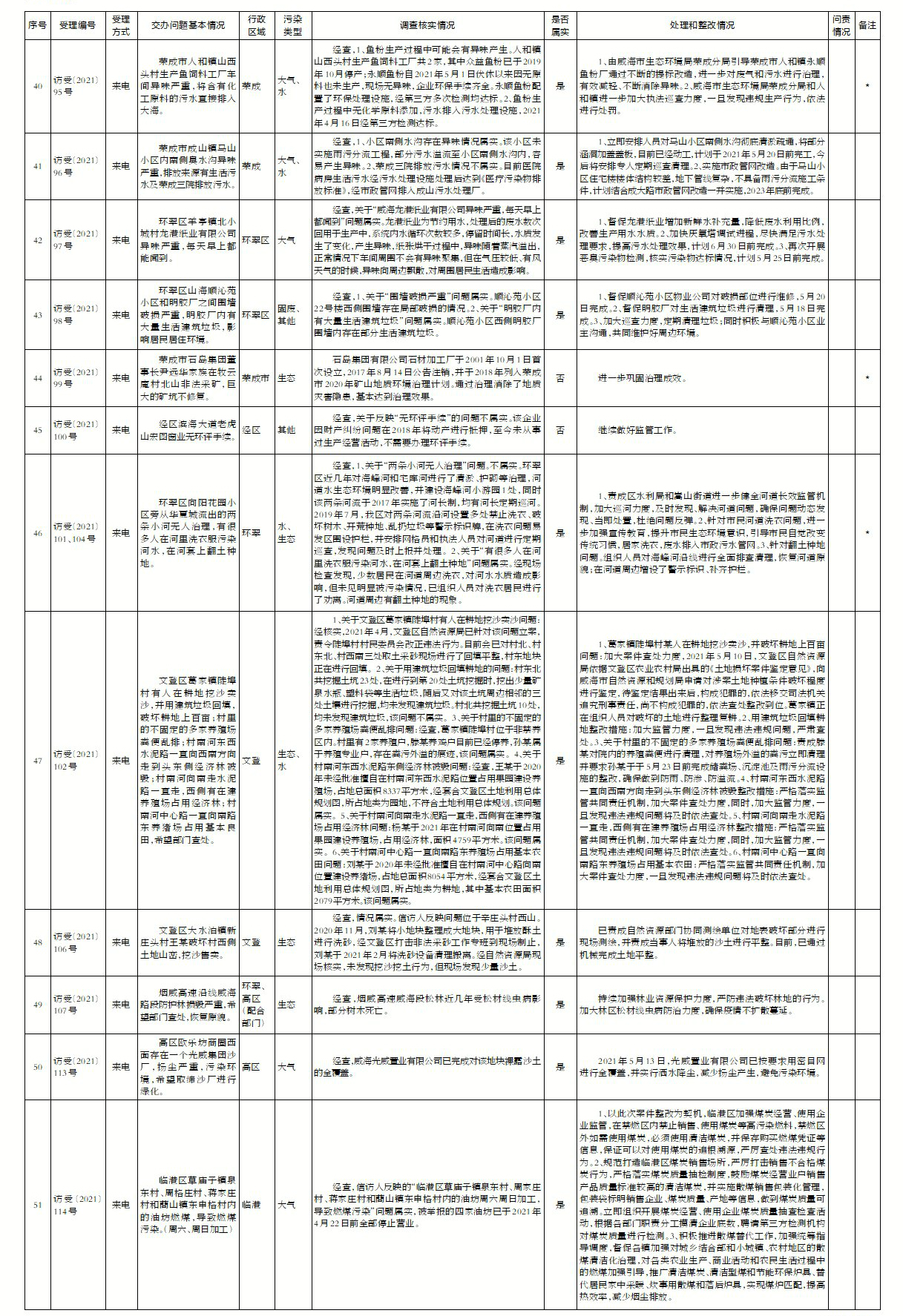 山東省第五生態環境保護督察組信訪舉報件及邊督邊改公開情況(第二批)