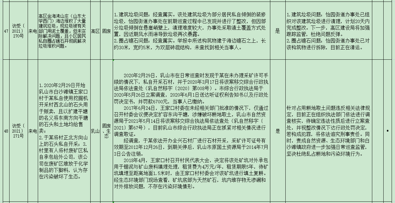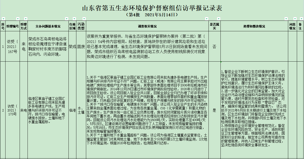 ????? 山東省第五生態(tài)環(huán)境保護(hù)督察組信訪舉報(bào)件及邊督邊改公開(kāi)情況(第四批)