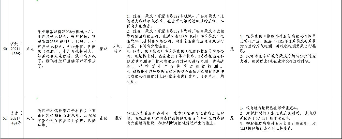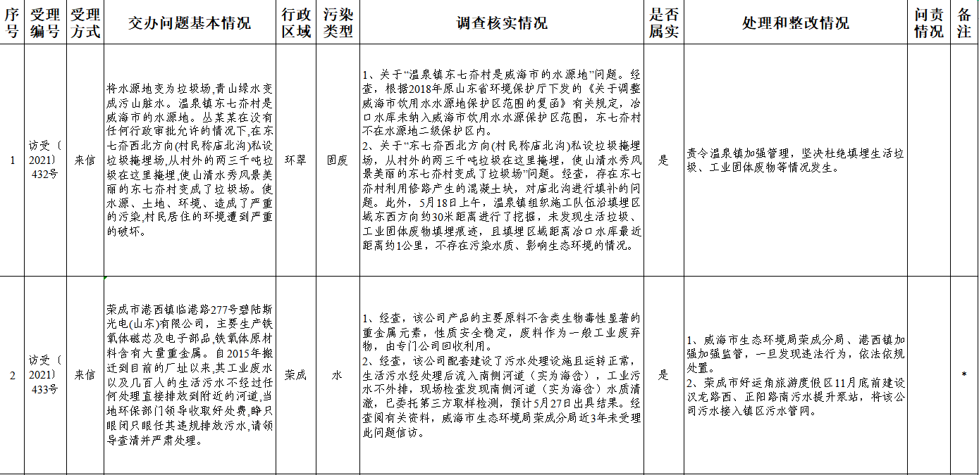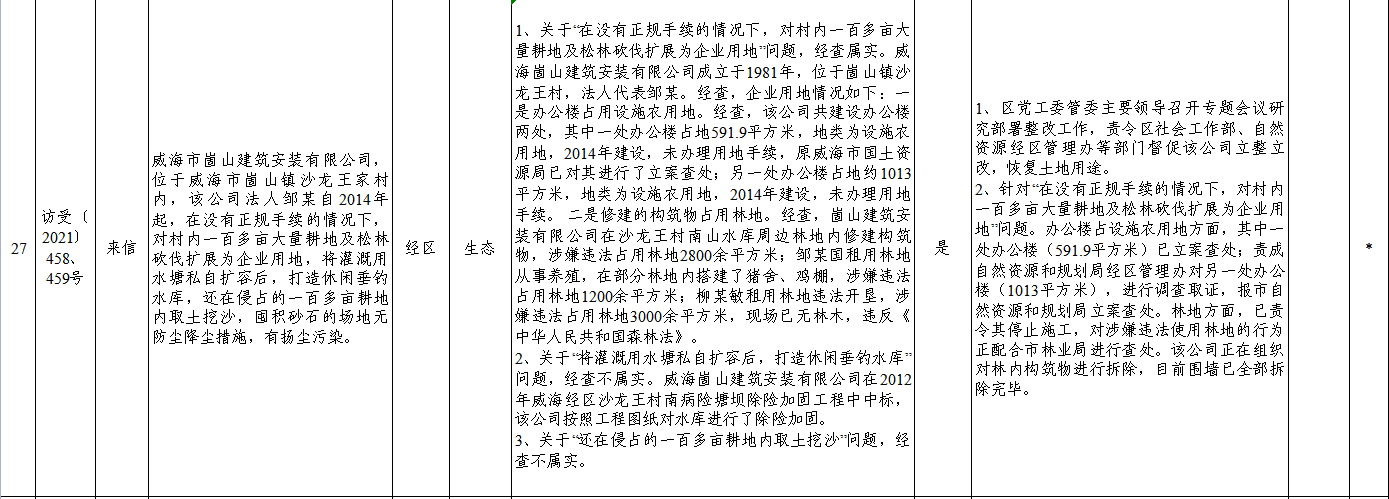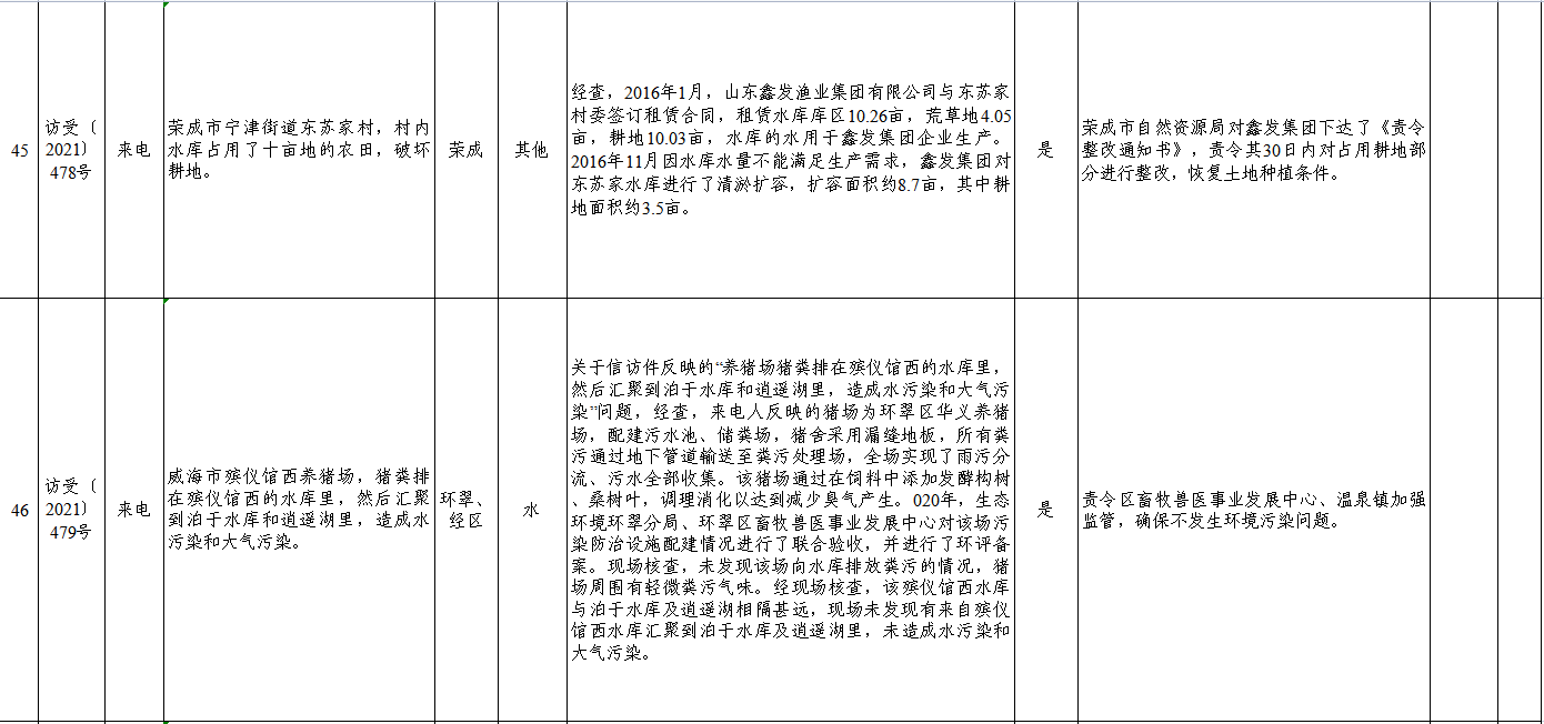 山東省第五生態環境保護督察組信訪舉報件及邊督邊改公開情況(第七批)
