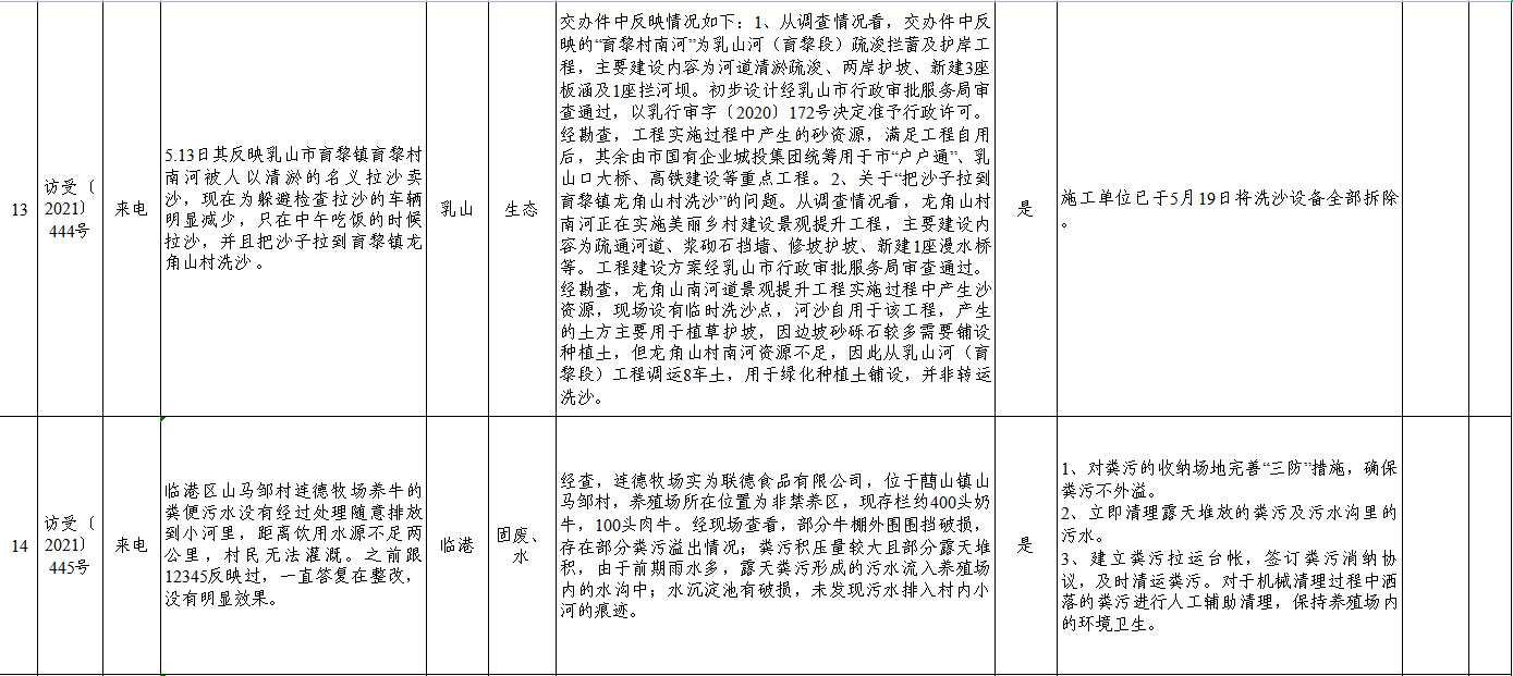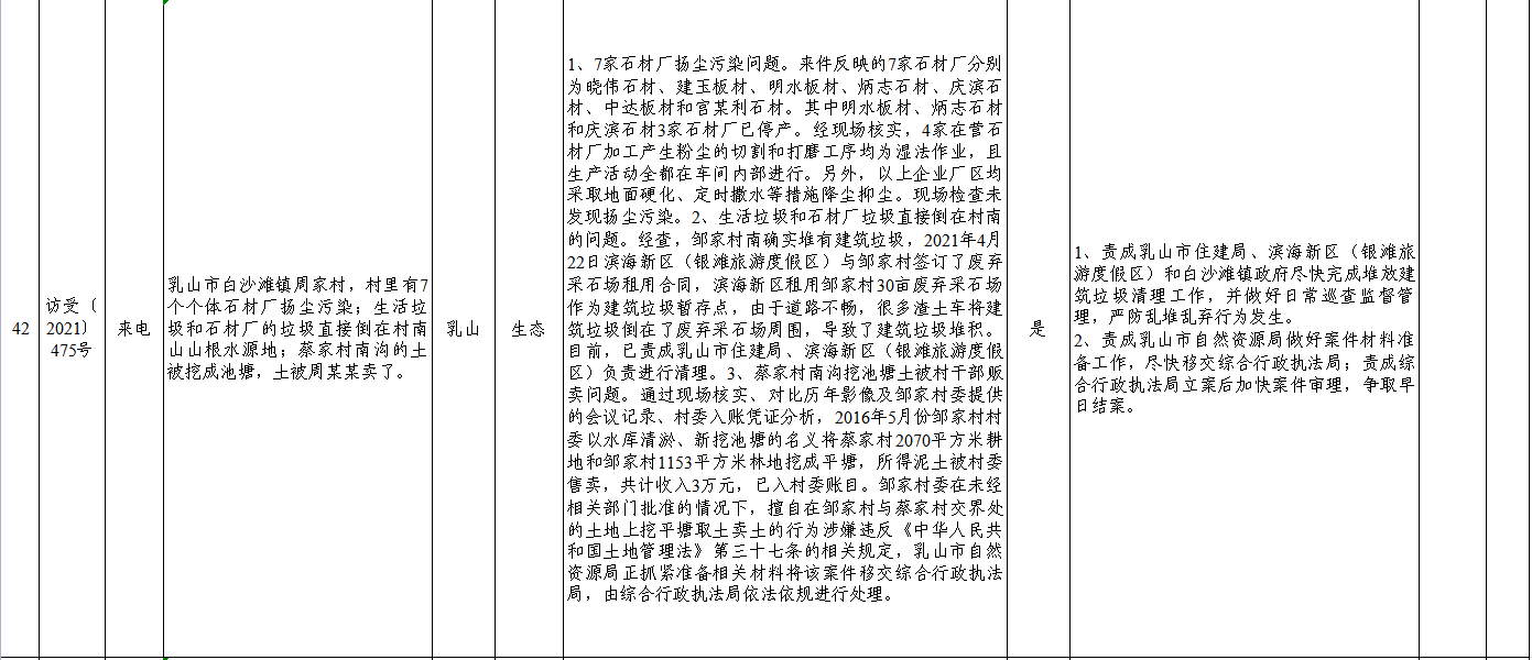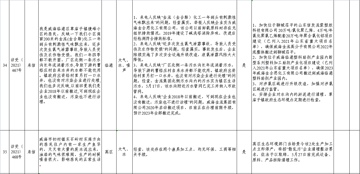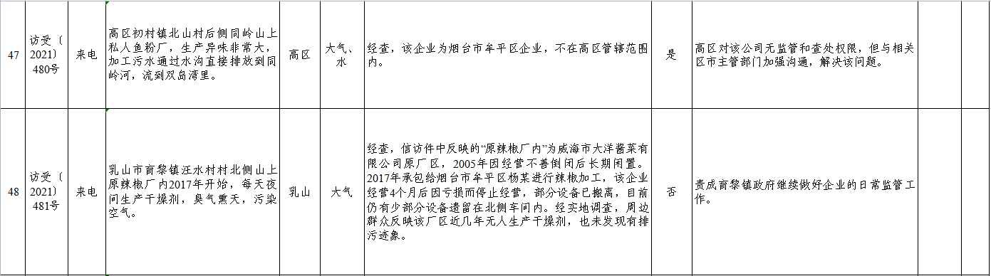 山東省第五生態環境保護督察組信訪舉報件及邊督邊改公開情況(第七批)