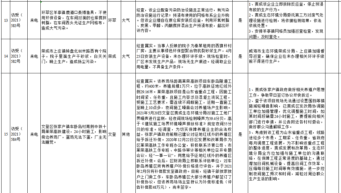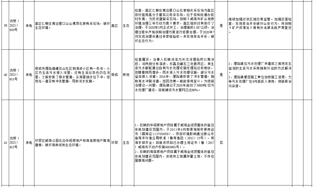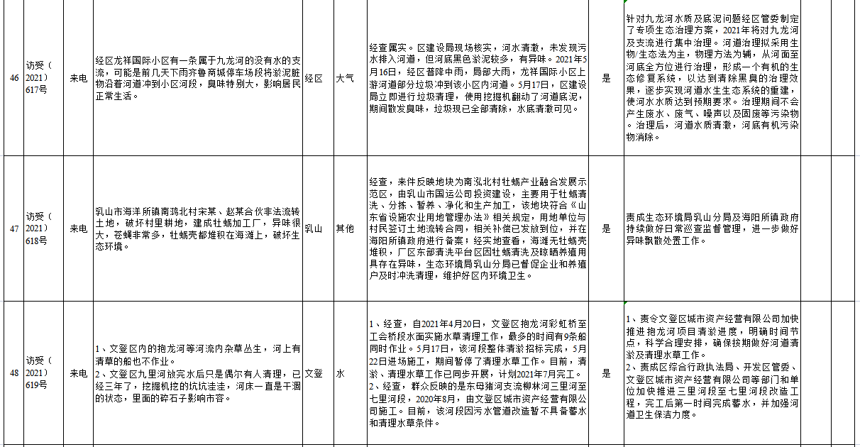 山東省第五生態環境保護督察組信訪舉報件及邊督邊改公開情況(第九批)