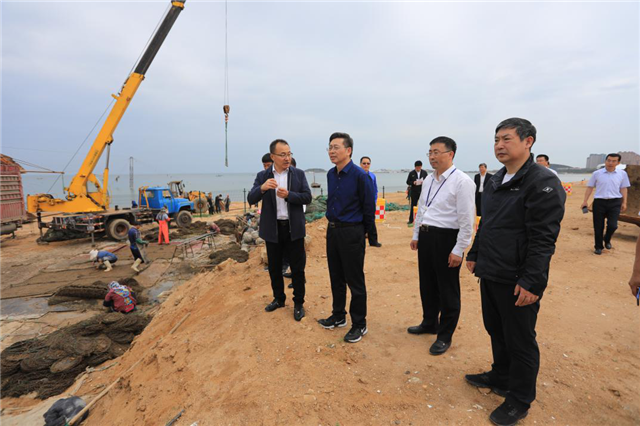 ????在威高海洋公園西側海岸,督察組察看了海岸帶治理情況,要求排查污水來源,重視海岸帶分區管理和分區利用,做到既保障海水養殖需要,又做到海岸環境整治美化。