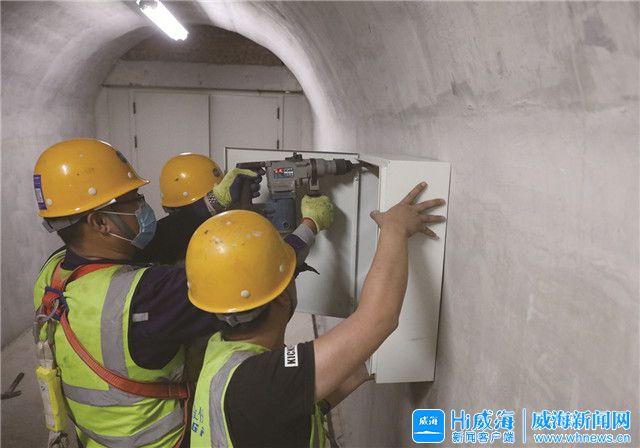 ??????“這次隧道內的布放有兩項任務,在兩個隧道之間的通道內安裝設備,在隧道外壁上安裝5G天線?!敝袊F塔股份有限公司威海市分公司文登乳山區域辦事處主任王輝介紹。記者看到,工作人員將電纜延長至隧道預先留好的通道內,與配電箱相連。配電箱安裝好之后,通信運營商將會把通信設備安裝在通道內。