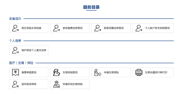 ????在“服務(wù)目錄”專欄,列出了能夠網(wǎng)上辦理的各項醫(yī)保業(yè)務(wù),包括信息查詢、醫(yī)保關(guān)系、就醫(yī)備案等多個大類共34項業(yè)務(wù)。