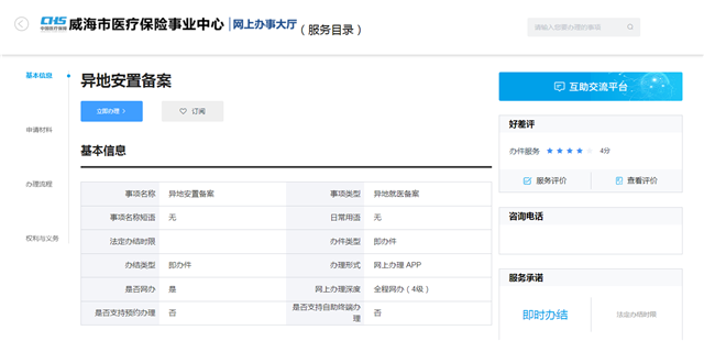 ????以異地安置備案業(yè)務(wù)為例,當(dāng)需要辦理該業(yè)務(wù)時,可以在服務(wù)目錄里找到該業(yè)務(wù),點擊辦理。