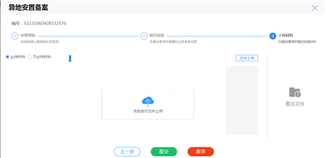 ????點擊上傳該業(yè)務(wù)的所需材料,然后點擊“提交”按鈕,即可完成該業(yè)務(wù)的辦理。