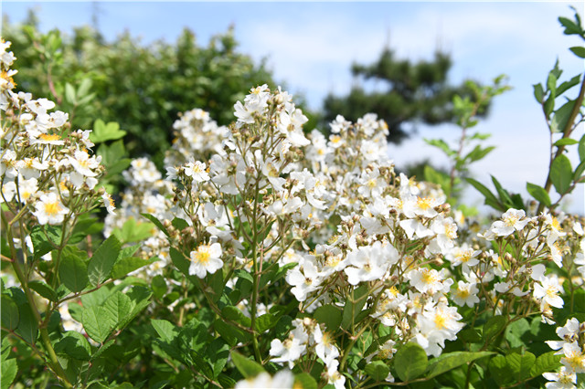 ??????眼下,東浪暖村的月季花海也已經盛開,整個月季園就像一塊綠色的“畫布”,五彩的月季用花朵在“畫布”上添了濃墨重彩的顏料色塊,白如雪、粉如霞,一片生機盎然,已有不少游客漫步其中,記錄美景。