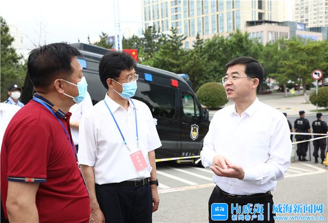 ??????在威海二中(南校區)北門,張海波認真查看考點周邊治安、交通秩序和外部環境,了解考點考務準備、考場設置、技防措施、應急預案及服務保障情況,叮囑堅守一線的考務人員切實負起責任,嚴格細致做好疫情防控、安檢、監考等各項工作,確保每名考生都服務周到,每個環節都安全順暢。