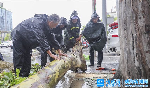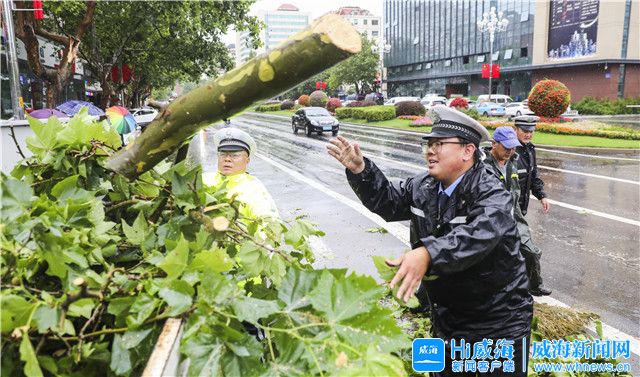 ??????7月13日上午9時(shí)左右,新威路和昆明路交叉口處,一棵大樹(shù)的枝干被風(fēng)雨折斷,倒在車(chē)道上,影響來(lái)往車(chē)輛正常通行。當(dāng)時(shí)風(fēng)雨特別大,我市交警、園林等部門(mén)10余名工作人員第一時(shí)間趕到現(xiàn)場(chǎng),冒著風(fēng)雨緊急處置。