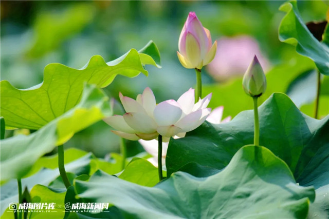 接天蓮葉無窮碧,映日荷花別樣紅。7月,威海在幾場雨后光速入夏,荷花悄然登場。