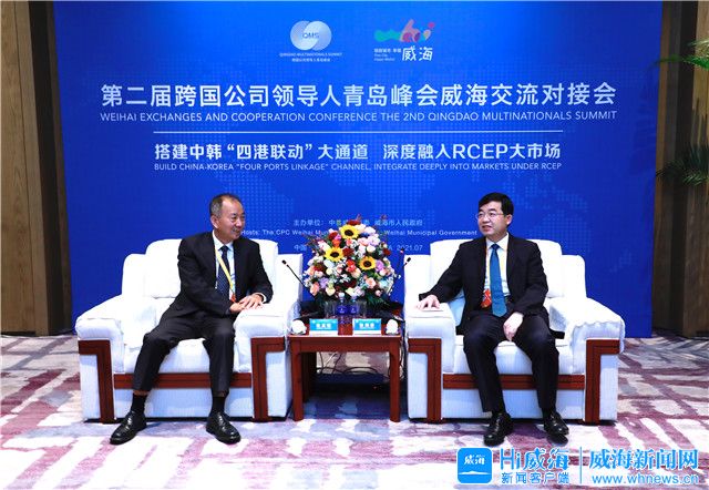 威海新聞網訊 7月16日,市委書記張海波在青島會見前來參加第二屆跨國公司領導人青島峰會的惠普公司大中華區總裁莊正松一行。市委副書記、市長閆劍波會見時在座。