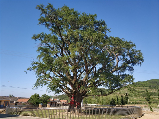 千年國槐位于乳山市馮家鎮萬家村內,為1200年國槐。民間傳說,此樹與黃巢起義有關,起義軍曾在這株樹下拴過馬,附近有山名為“黃到頂”。電影《苦菜花》《山菊花》,電視劇《血染的風采》曾在古樹下拍過場景。