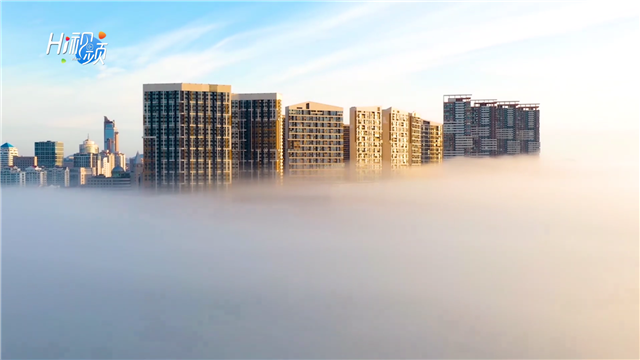 ??????近日,威海市又現平流霧奇觀,云霧像絲綢一般漂浮在樓宇之間,儼然人間仙境。