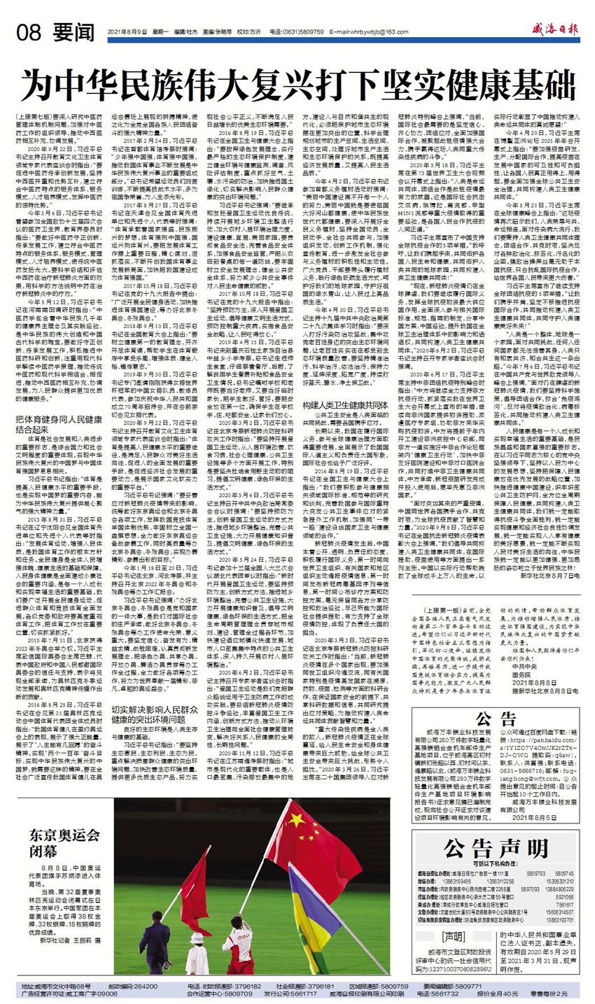 威海日報 2021-08-09