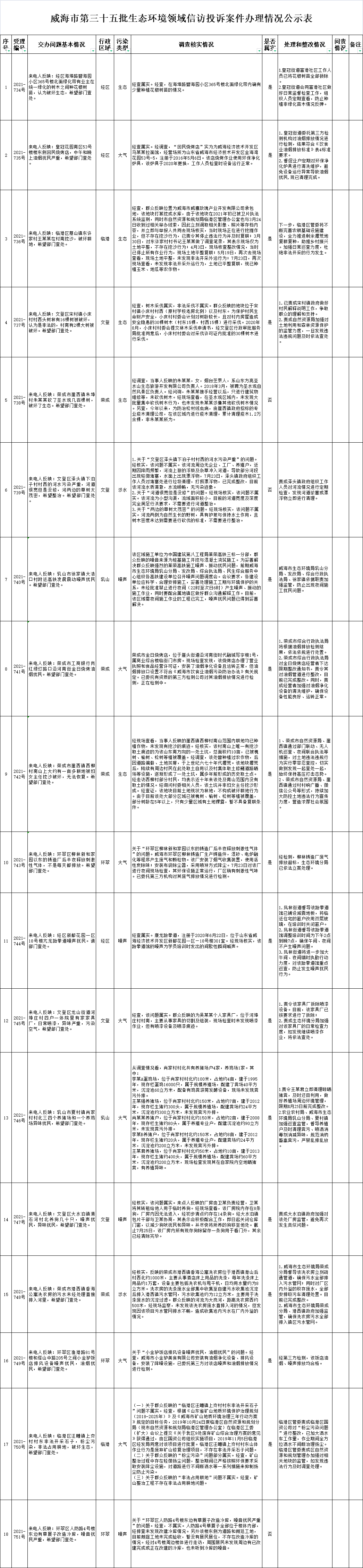 威海市生態(tài)環(huán)境領域信訪投訴案件及邊督邊改公開情況(第三十五批)