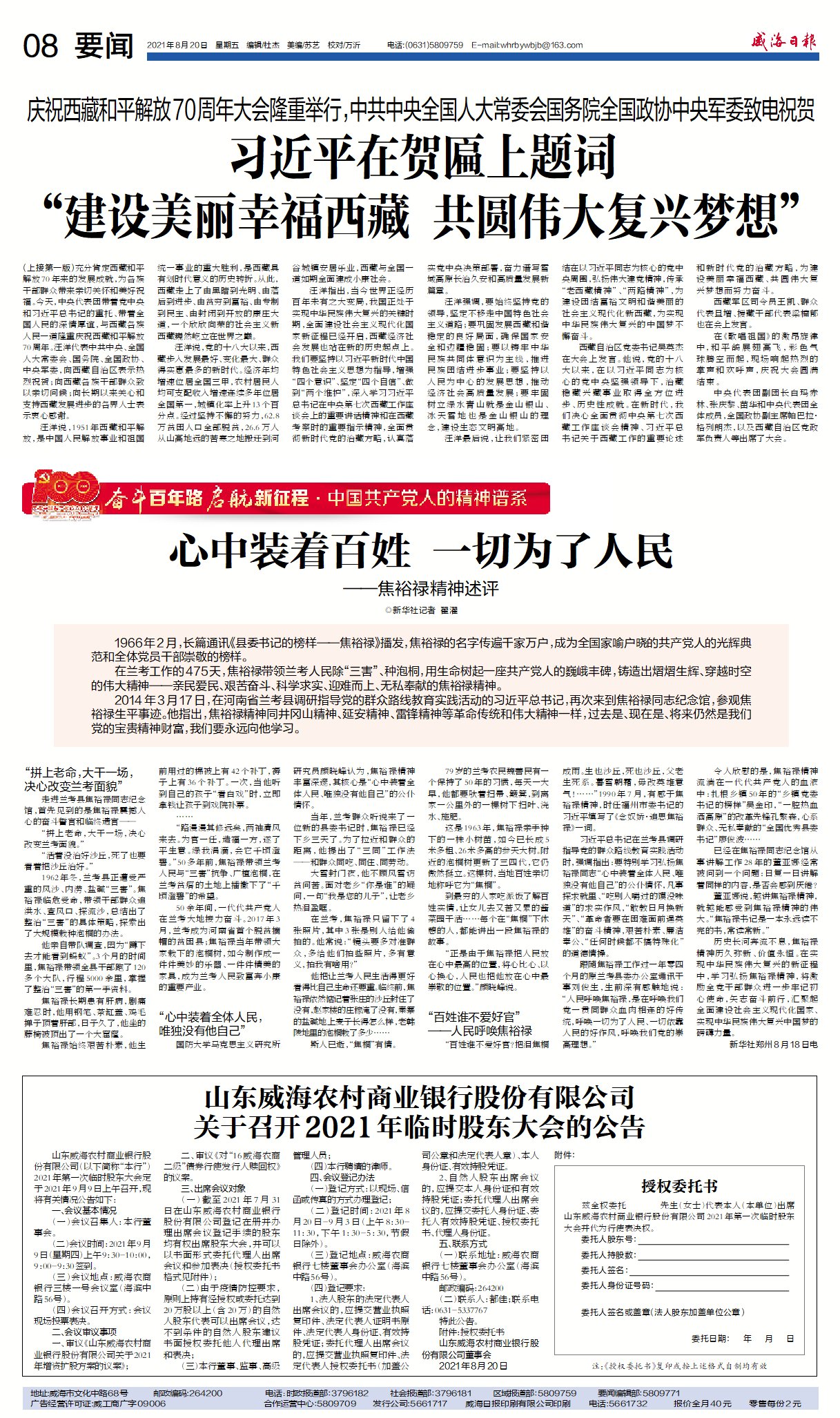 威海日報 2021-08-20