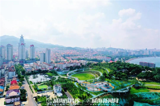 ??? 這位家門口的“網紅大咖”就是位于金線頂路和劉公島路之間的金線頂公園。公園臨海而立,與劉公島隔海相望,目之所及,一半紅瓦綠樹,一半碧海藍天,簡直絕絕子!