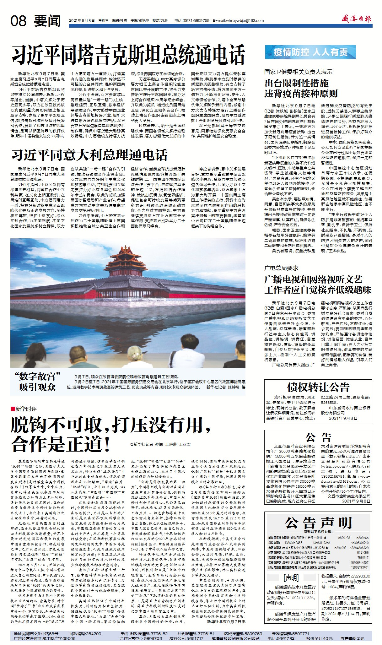 威海日報 2021-09-08