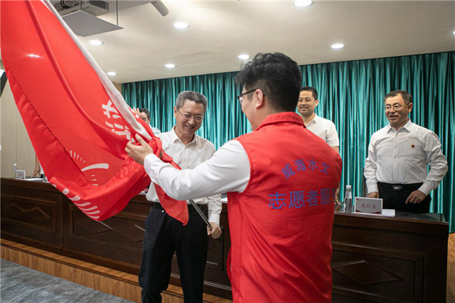 ??????志愿服務(wù)精神是時(shí)代的一面旗幟。活動(dòng)現(xiàn)場(chǎng),李學(xué)波、威海市水文中心副主任孫乃波、副主任王仁寶、紀(jì)檢員梁魯冰,分別為威海水文志愿服務(wù)隊(duì)、城區(qū)水文志愿服務(wù)隊(duì)、榮成水文志愿服務(wù)隊(duì)、乳山水文志愿服務(wù)隊(duì)授旗。莊嚴(yán)的授旗儀式標(biāo)志著志愿服務(wù)隊(duì)的正式成立,也標(biāo)志著威海水文志愿服務(wù)進(jìn)入規(guī)范化、標(biāo)準(zhǔn)化、制度化的新階段。