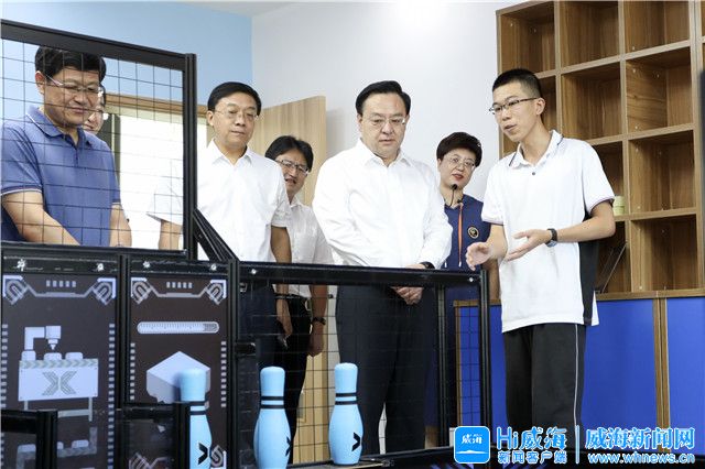??????在榮成市第三中學,閆劍波走進科創中心、實驗樓,與教師們一同觀看學生實踐成果展示,鼓勵教師要緊跟時代變化,創新教育教學方法,不斷提高教學質量,助力學生成長成才。閆劍波說,教師與學生朝夕相處,了解學生的心理動態,要堅持立德樹人,注重學生的心理健康教育,注重培養學生吃苦精神以及面對挫折的心理承受能力,促進學生全面健康成長。各級各部門要以實際行動關心關愛教師,切實解決好教師日常生活和工作中的具體問題,讓教師全身心投入教學。要健全教師激勵機制,營造更好的育人環境和發展空間,讓教師們在學校工作有干勁、有收獲。要在全社會大力營造尊師重教的濃厚氛圍,不斷提高教師社會地位,切實增強廣大教師的職業榮譽感。(Hi威海客戶端記者 楊彩明/文 孫大偉/圖)