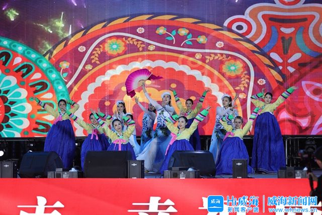 ??????當晚7時,夜幕下的威海海鮮美食廣場人頭攢動。這處新的美食“打卡地”迎來一眾國內外游客。頗具中韓風情的中韓風情舞蹈、歡快熱烈的鮮族長鼓舞、活力四射的韓國女團歌舞表演……精彩紛呈的演出瞬間點燃現場氣氛。