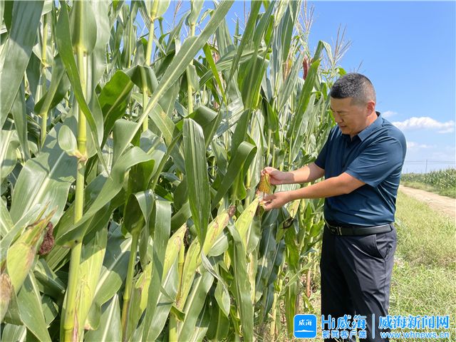 ??????9月22日,距離秋玉米收獲還有不到半個月時間,文登區澤頭鎮千千農場負責人于進海每天都要去田里“打卡”。中午12時的日頭正烈,于進海走進比自己高的玉米地,拽起身旁的玉米葉、玉米穗細細打量起來。“到秋收的關鍵期了,我得盯緊嘍!”