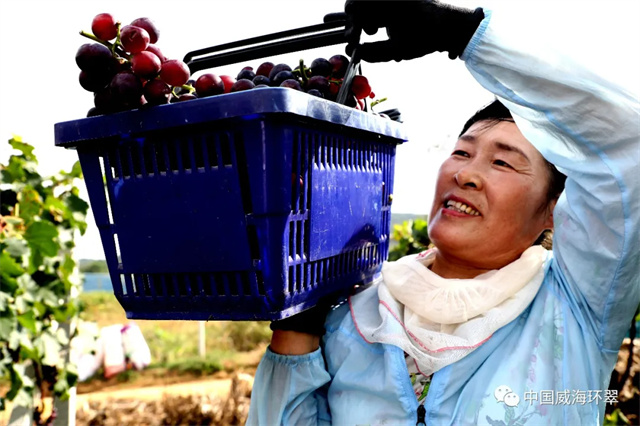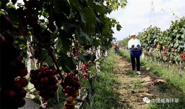 ??????金秋時節,環翠區羊亭鎮南郊村的葡萄園迎來大豐收,果園處處彌漫著濃郁的葡萄香味,大批游客前來采摘,村民臉上洋溢著豐收的喜悅,田間地頭到處是歡聲笑語。