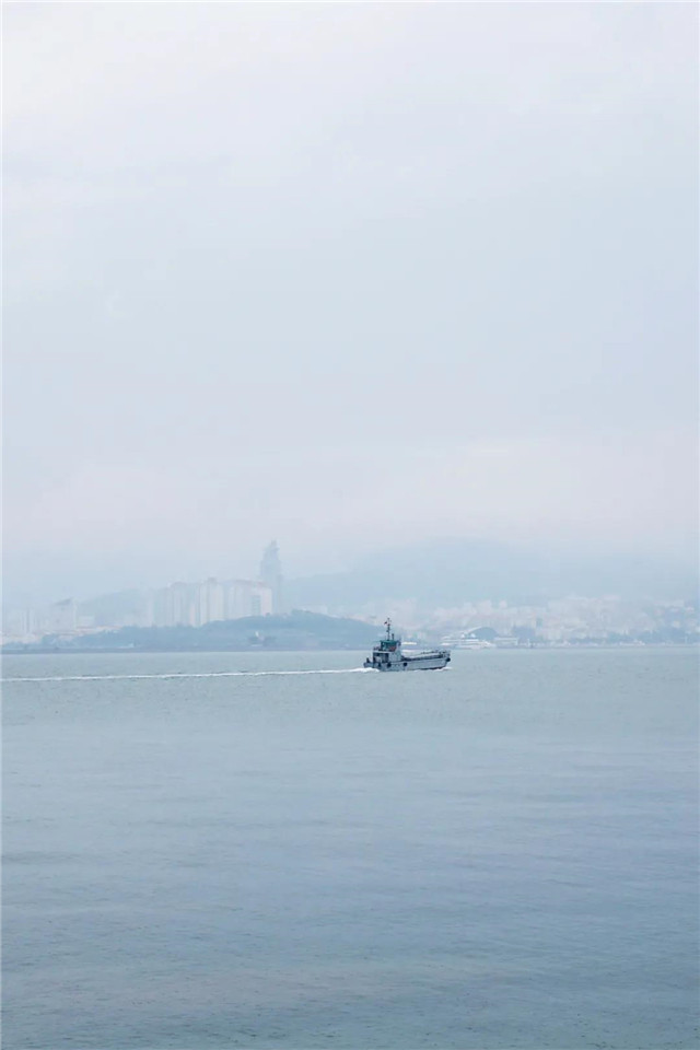 讓海面只露出三兩海礁和剛好經(jīng)過的游船