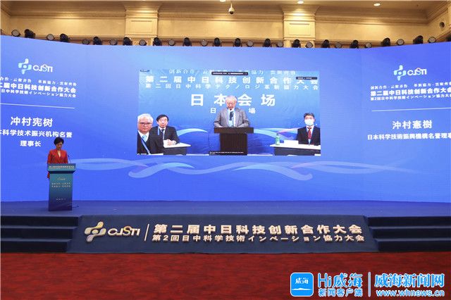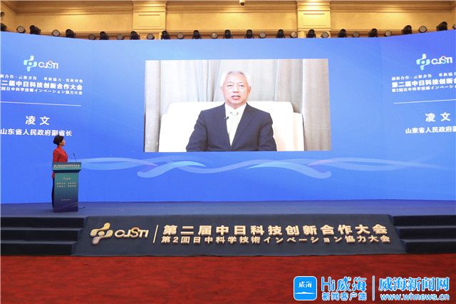 ??????威海新聞網訊 11月10日,第二屆中日科技創新合作大會在威海舉行,大會設北京、日本東京分會場。副省長凌文通過視頻為本屆大會致辭??茖W技術部國際合作司司長戴鋼,省科學技術廳廳長唐波,日本科學技術振興機構名譽理事長沖村憲樹,市委書記張海波,市委副書記、市長閆劍波,市委常委、秘書長侯世超,副市長孫付春出席活動。閆劍波、戴鋼、沖村憲樹先后在主會場和分會場致辭。