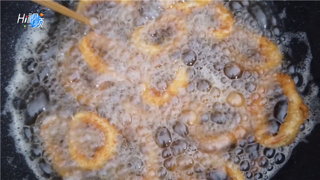 ??????溫馨提示:炸魷魚圈時,油不要太熱,時間也不宜過久,外皮呈金黃色就可以了!(來源:威海臨港經濟技術開發區黨政辦公室)