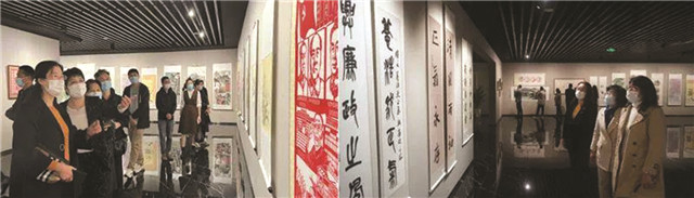 ??????威海“清廉之路·你我同行”書畫攝影展在市群眾藝術館正式開展后,吸引了全市各級各部門單位的黨員、干部前來觀展學習,開展主題黨日活動。