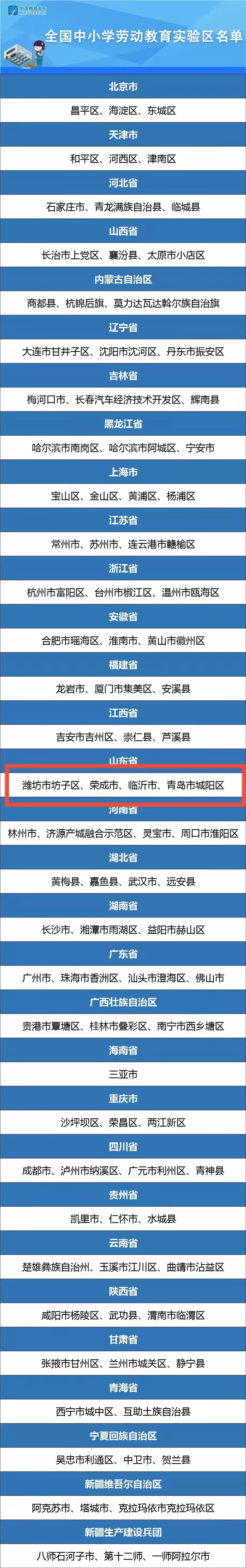 ??????在自主申報(bào)、省級(jí)推薦的基礎(chǔ)上,經(jīng)專家評(píng)審、綜合評(píng)定和網(wǎng)上公示,近日,教育部認(rèn)定96個(gè)縣(區(qū)、市)為全國中小學(xué)勞動(dòng)教育實(shí)驗(yàn)區(qū)。其中,榮成市上榜!