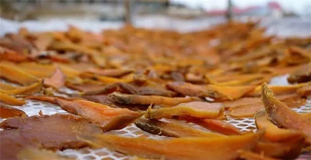 ??????將地瓜洗凈去皮后,放進鍋中蒸煮。然后,將蒸熟的地瓜剝皮、切片,放在網架或竹匾上,再拿到平房頂的太陽底下攤開晾曬,并需要時時翻個兒,讓風和陽光帶走地瓜的水分。