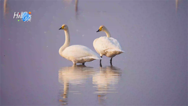 ??????這些“白色精靈”在湖上翩躚起舞,歡快戲水,譜寫了一曲曲“冬日戀歌”。(Hi威??蛻舳擞浾?宮舉衛/攝)