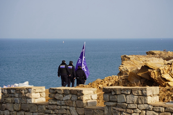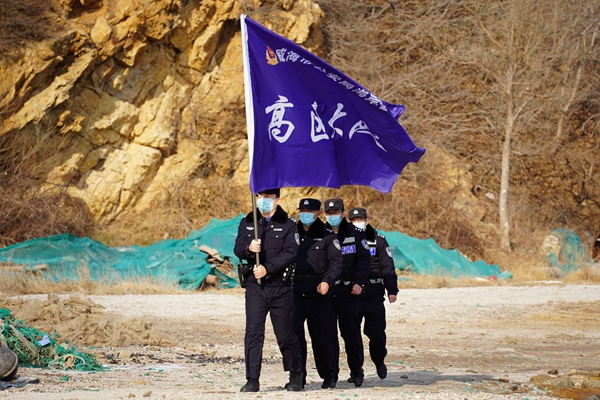??????巡查期間,高區海岸民警采取警燈閃爍與徒步巡查相結合的方式,高舉隊旗,深入轄區漁港碼頭、海岸沙灘、偏僻岸礁等區域開展海岸實地踏查,用腳步丈量海岸,用青春書寫忠誠,為國家海防安全和海上疫情防控工作貢獻力量。(通訊員 婁源立 張廣山)