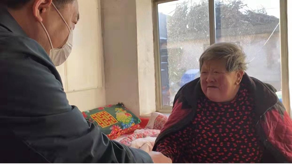 ??????走訪慰問中,慰問組同五保戶、生活困難老人親切交談,了解他們的生活、工作、學習、身體等情況,鼓勵他們提振信心,以樂觀的態度對待生活。