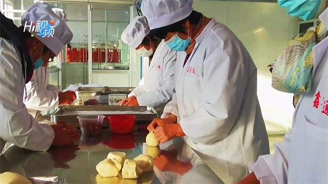 ??????揉、按、壓……在花餑餑生產間內,工人們身穿白大褂,頭戴糕點帽,面戴口罩,手里不斷翻滾著面團,不一會兒的工夫,一個個造型喜慶的花餑餑便逐漸成形。據悉,從她們手里制作出的花餑餑,將銷往向全國各地。