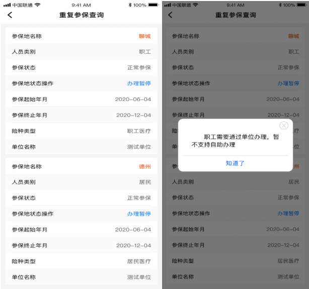 ??????(一)如果您重復(fù)參保查詢(xún)的人員類(lèi)別是“職工”,職工需要通過(guò)單位辦理,暫不支持自助辦理。