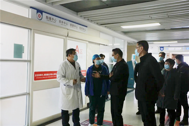 1月30日上午,威海市中心醫(yī)院黨委書記鄒東明、院長隋海明帶領(lǐng)部分班子成員和相關(guān)職能科室負(fù)責(zé)人,來到發(fā)熱門診、急診科、門診、醫(yī)技等部門走訪慰問了堅(jiān)守在一線崗位的醫(yī)護(hù)人員,向大家致以誠摯問候和新年祝福。