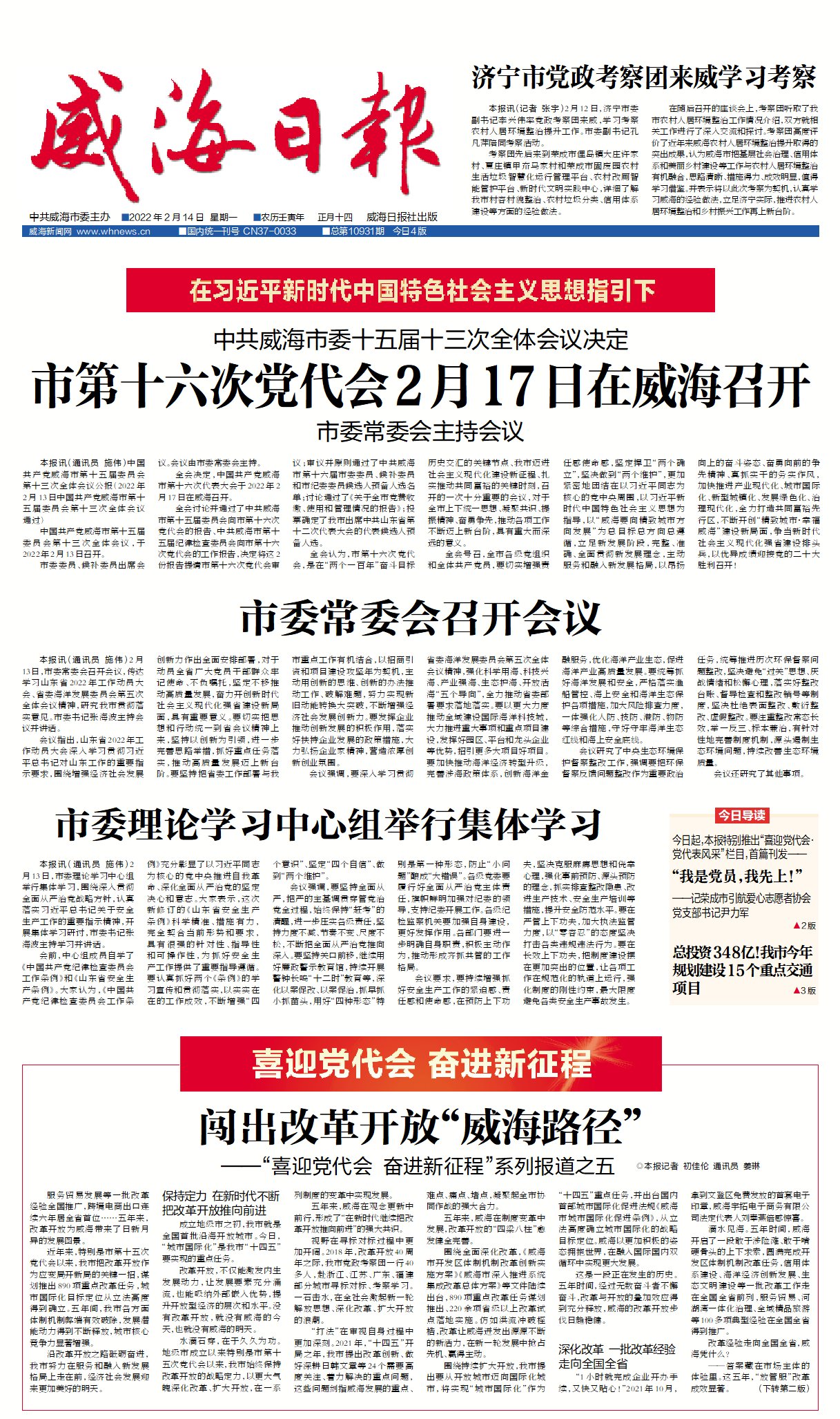 威海日報2022-02-14